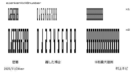 ここまでの「横4縦48ドット超縦長数字フォント」。